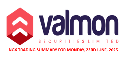 In total,  130 NGX listed equities participated in trading, ending with 46 gainers and 22 losers. Presco led the gainers with 10% share price appreciation closing at NGN 1,210.00 per share, followed by Beta Glass Company (+10%), Champion Breweries (+10%) and Neimeth International Pharma (+10%). On the losing side, Julius Berger Nigeria came out last with an end-of-day price depreciation of 7.48% at NGN 117.50 per share, followed by Chams (-5.09%), Secure Electronic Technology (-5%) and Multiverse Mining & Exploration (-4.66%). Fidelity Bank recorded the highest volume of 142 million traded shares, followed by Zenith Bank (46.3m), Nigerian Breweries (38.1m) and FTN Cocoa Processors (38m).